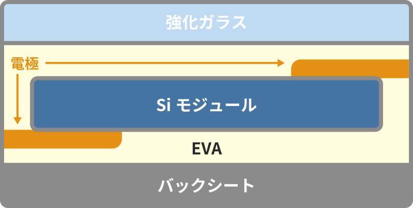 太陽光パネルをリサイクルする上で課題となるのがその構造です。シリコンモジュールはEVA等の接着材により強化ガラスとバックシートの中間に封止されており、この複合構造が分離・分解作業を困難にしています。