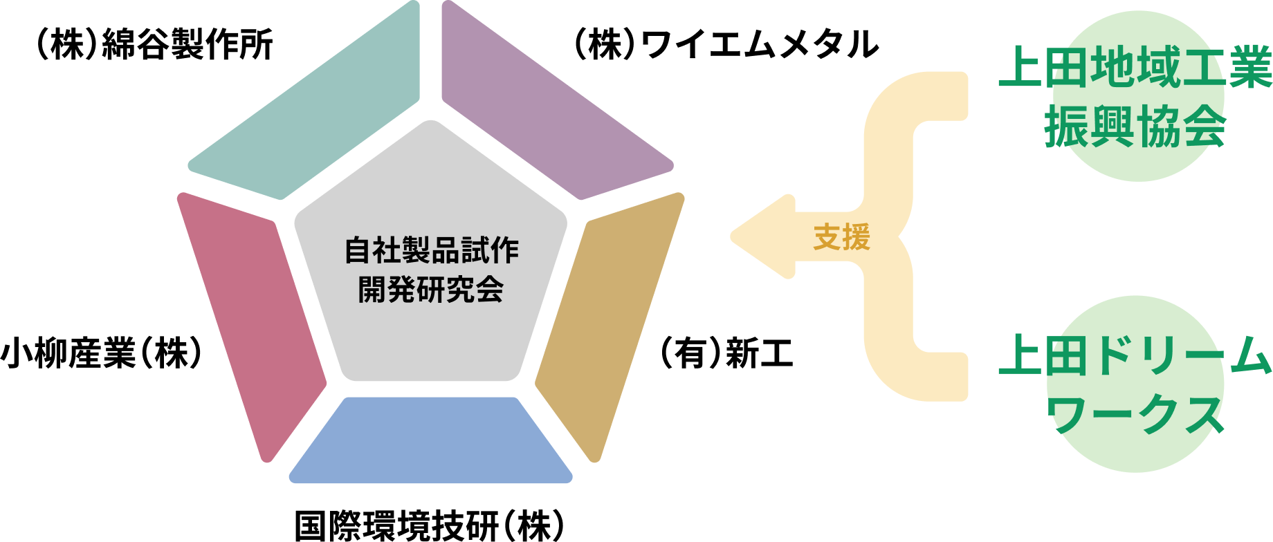 長野県上田市内の5社で構成される自社製品試作開発研究会では、これらの太陽光パネルの廃棄問題の解決に向けて、太陽光パネルリサイクル装置及びシステムの開発に取り組んでいます。